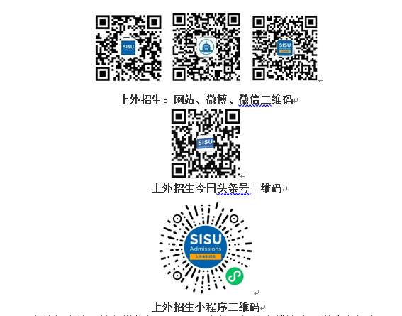 答:上海外国语大学本科招生网站:http://admissions.shisu.edu.cn;电子邮箱:ao@shisu.edu.cn;咨询热线:021-55386006、55383668;微博、微信、视频号、今日头条号:上外招生。微信小程序:上海外国语大学招生办公室。